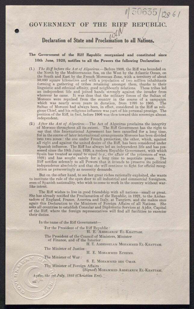 Onder leiding van Abdelkrim El Khattabi werd in 1921, na de vernietigende nederlaag van het Spaanse leger bij Annual, de Rif-republiek uitgeroepen. Wat men ook van deze staatkundige entiteit moge denken, zij vormt het onweerlegbare bewijs dat de regio een eigen staatsrechtelijke traditie en een autonome politieke organisatie heeft gekend – lang voordat het centrale gezag in Rabat zijn gezag over het noorden definitief meende te vestigen. De opstand van 1958-1959: een politieke strijd